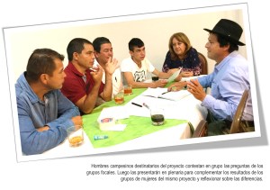 - La separación de hombres y mujeres en los grupos focales, para el trabajo en subgrupos y para compartir los resultados en plenaria, garantiza que se expresen todas las opiniones. Está demostrado que, en las reflexiones con subgrupos mixtos, las mujeres muestran la tendencia a participar muy poco y se termina aceptando la opinión de los hombres como la del grupo. Estas metodologías propician la igualdad de oportunidades para que mujeres y hombres expresen su opinión y que las voces de las mujeres sean tenidas en cuenta.