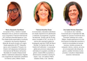 Inspiradas por la Política Canadiense de Asistencia Internacional Feminista (FIAP, por su sigla en inglés)¹ y aprovechando una evaluación en curso del programa de cooperación canadiense en Colombia, se conformó un equipo mixto de evaluadoras con especialistas canadienses y colombianas para diseñar e implementar el piloto.