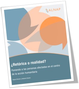 “el compromiso de las personas afectadas en una o más fases del ciclo de respuesta humanitaria” (documento ¿Retórica o realidad? Poniendo a las personas afectadas en el centro de la acción humanitaria);