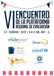En esta ocasión, les invitamos a sumarse al VI Encuentro de la Plataforma Regional de Evaluación, que tendrá lugar el jueves 24 de febrero de 2022, de 8:00 – 11:00 AM (GMT-6).
