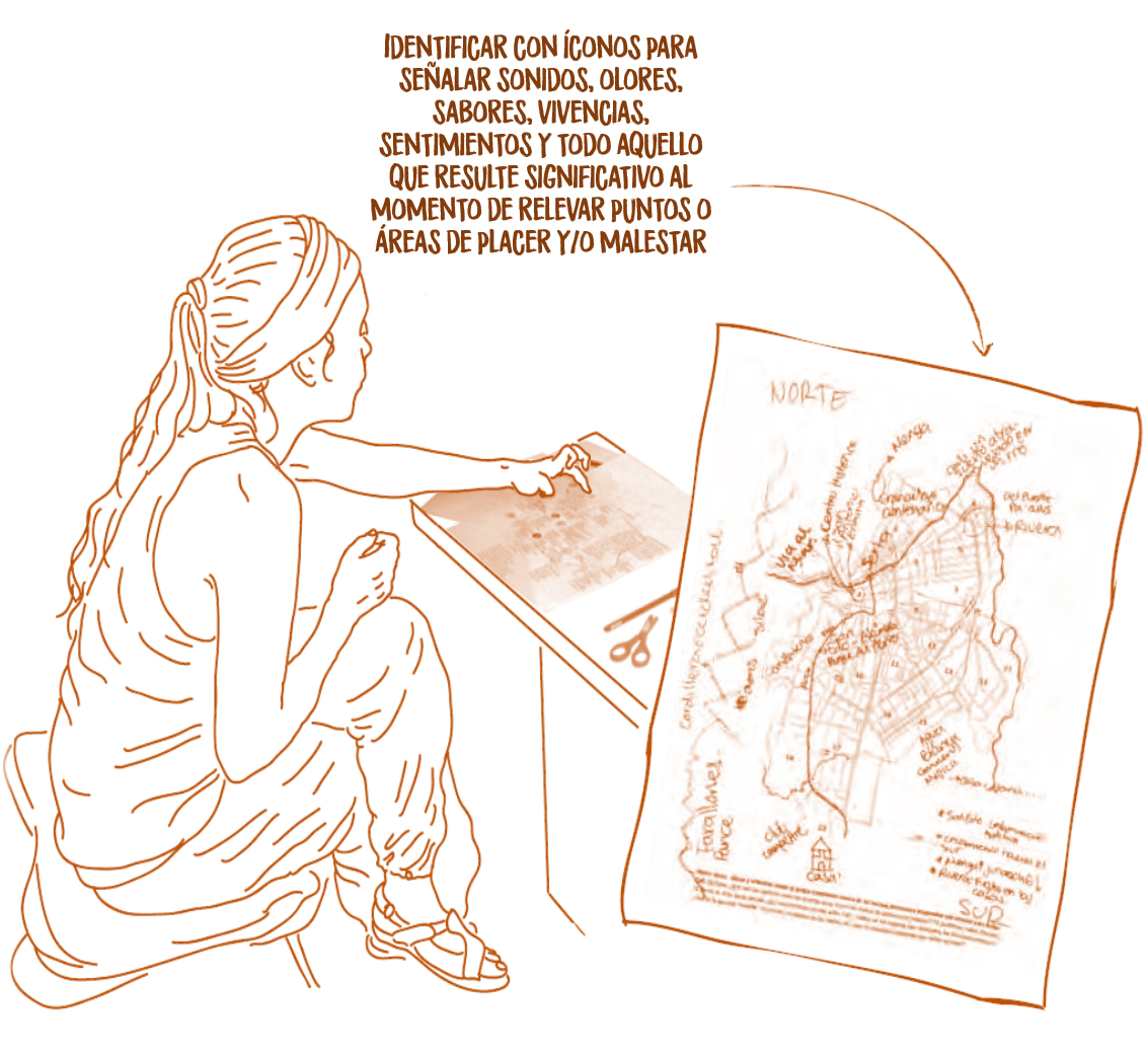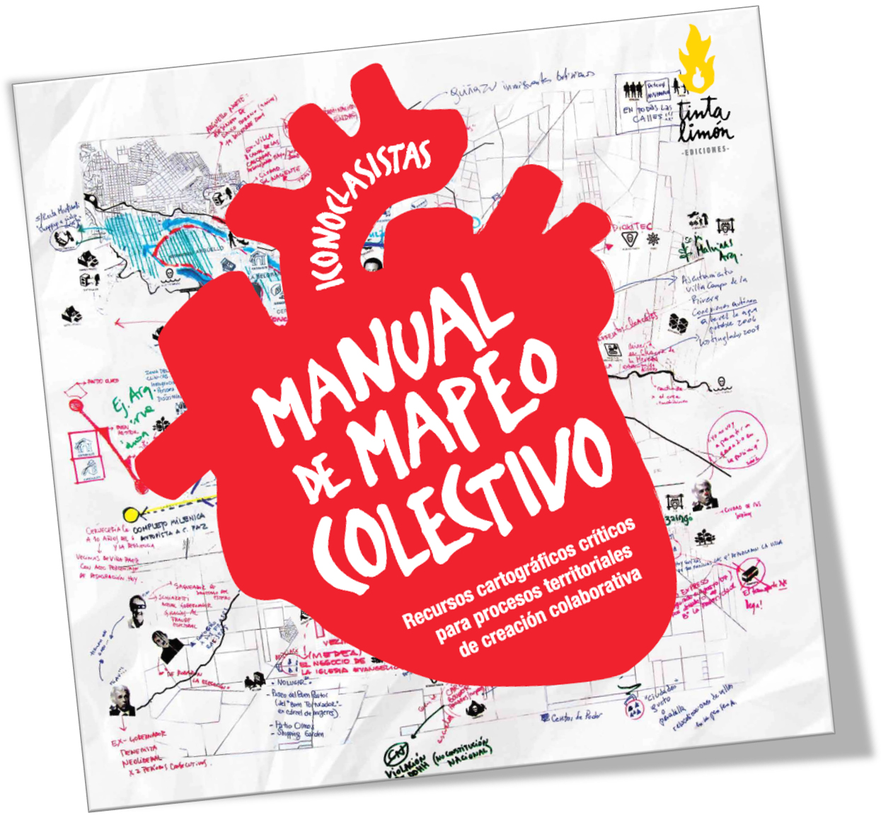 El Manual de Mapeo Colectivo, una guía que condensa nuestra metodología de trabajo. El manual está basado en nuestra experiencia para mostrar cómo a través de los talleres de mapeo se pueden favorecer las distintas formas de comprender y señalizar el espacio a través del uso de variados tipos de lenguaje, como símbolos, gráficas e íconos, que estimulan la creación de collages, frases, dibujos y consignas.
