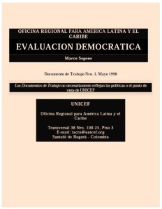 Este documento de trabajo está basado en una experiencia que UNICEF en América Latina y el Caribe (UNICEF/ALC) desarrolló durante casi dos años. Este material se concibió como un medio para estimular, entre las agencias internacionales, la discusión con respecto a nuevos elementos, cambios y diferentes perspectivas y enfoques en la evaluación.
